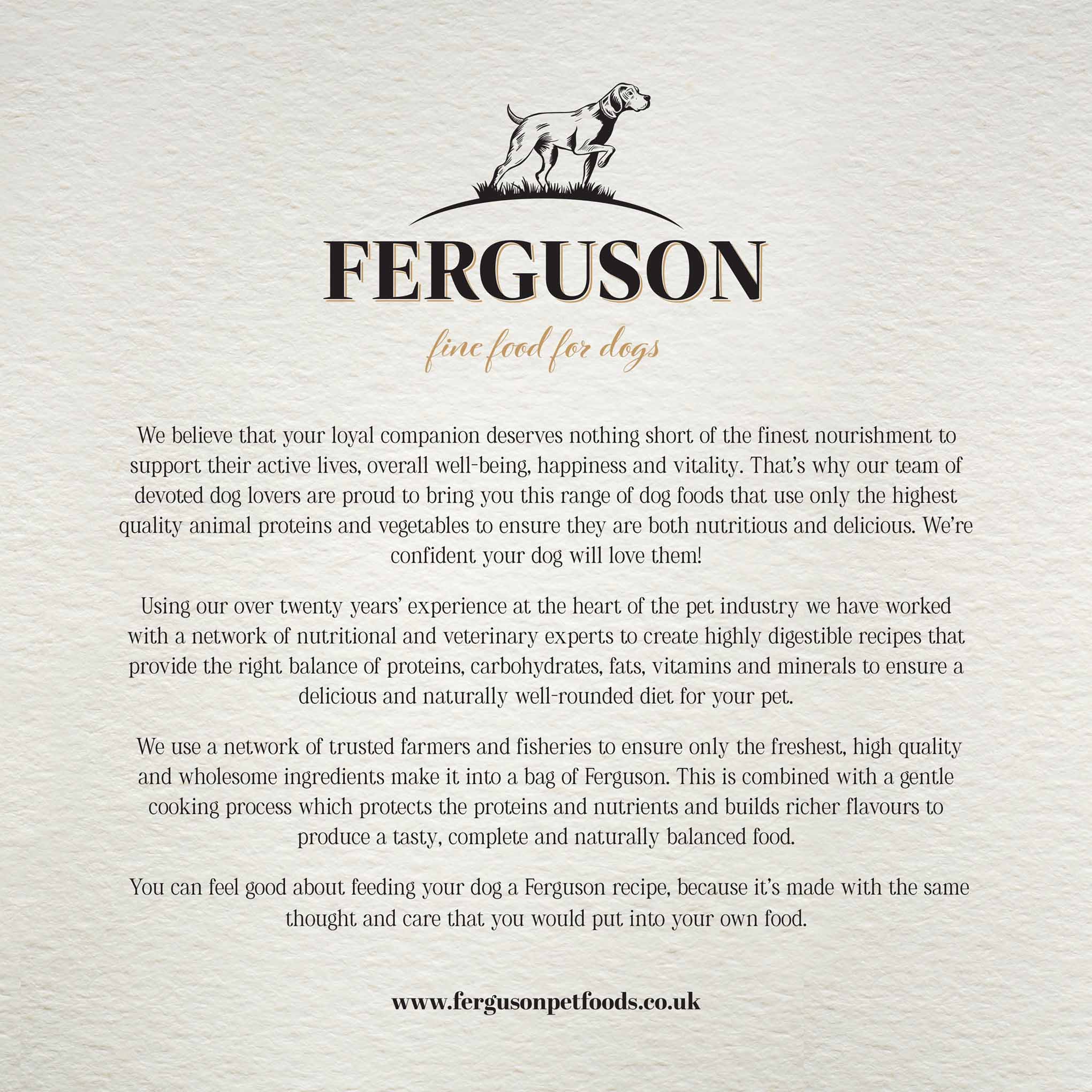 About Ferguson Fine Food for Dogs You can feel good about feeding your dog Ferguson Scottish Salmon...